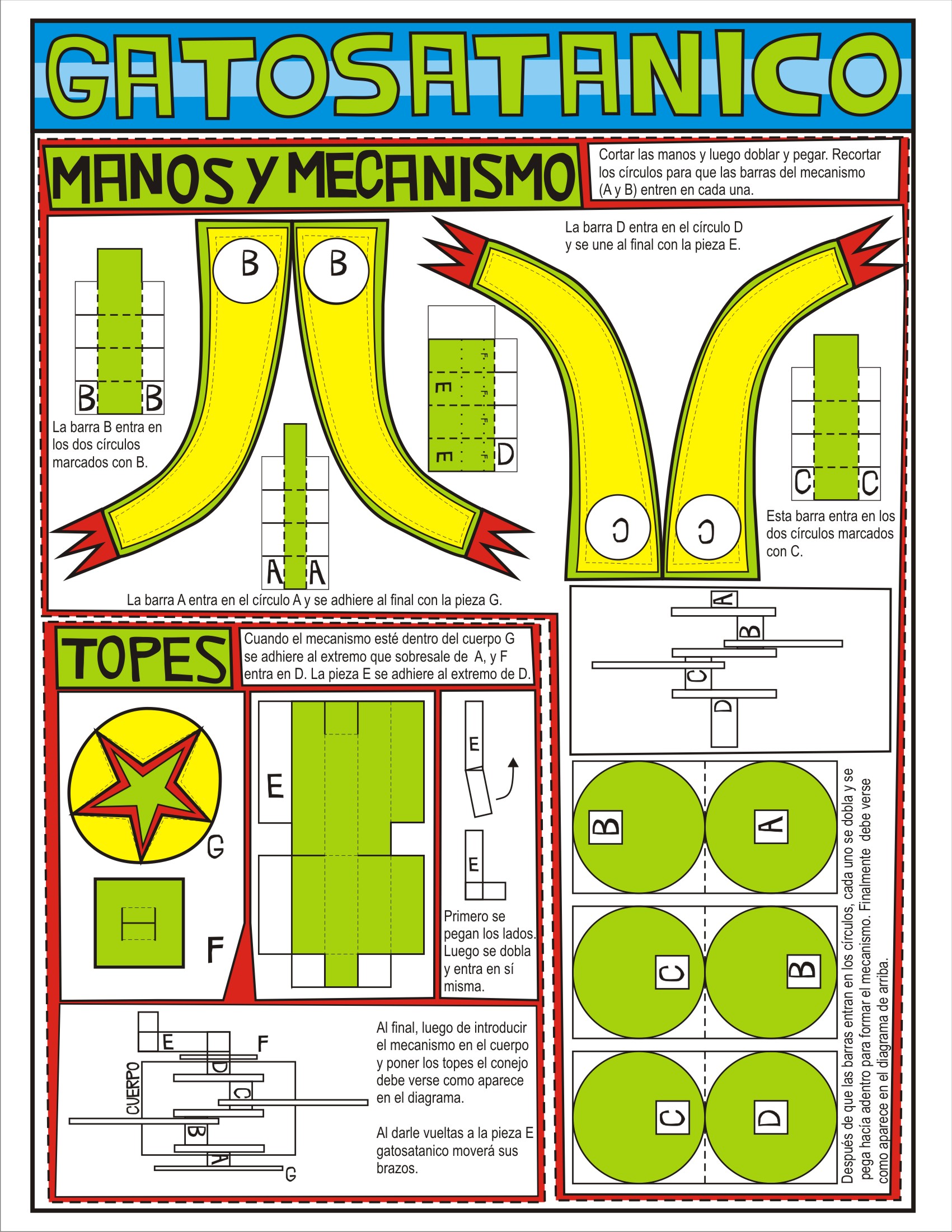 Собираем, согласно схеме, вставляем внутрь собранный механизм движения конечностей, склеиваем вставляя в прорези верхние лапы, получаем такого «токсичного» кота.