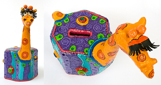 Просто сделайте прорезь в дне пластиковой баночки из под крема, налепите на ней образ любого персонажа так чтобы крышка баночки осталась не замурованной с низу поделки. Тогда в такую копилку из папье маше можно свободно класть и вынимать с низу скопленные деньги.